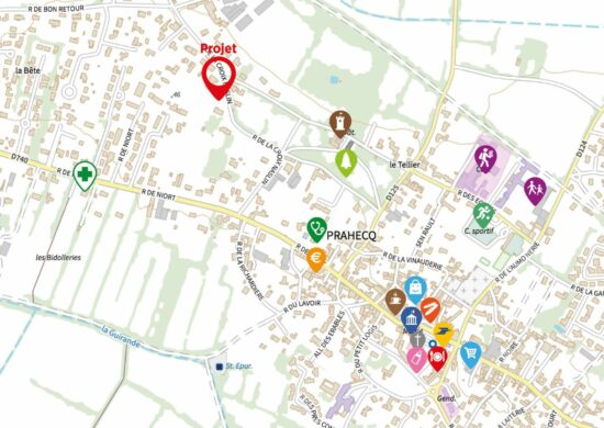 Prahecq est un village dynamique où il fait bon vivre, avec son centre-bourg animé offrant toutes les commodités essentielles. Vous y trouverez une boulangerie, une supérette, un cabinet médical et une pharmacie, ainsi que des écoles maternelle, élémentaire et un collège, pour un quotidien pratique et agréable. Le village allie harmonieusement tranquillité et accessibilité aux services de proximité.