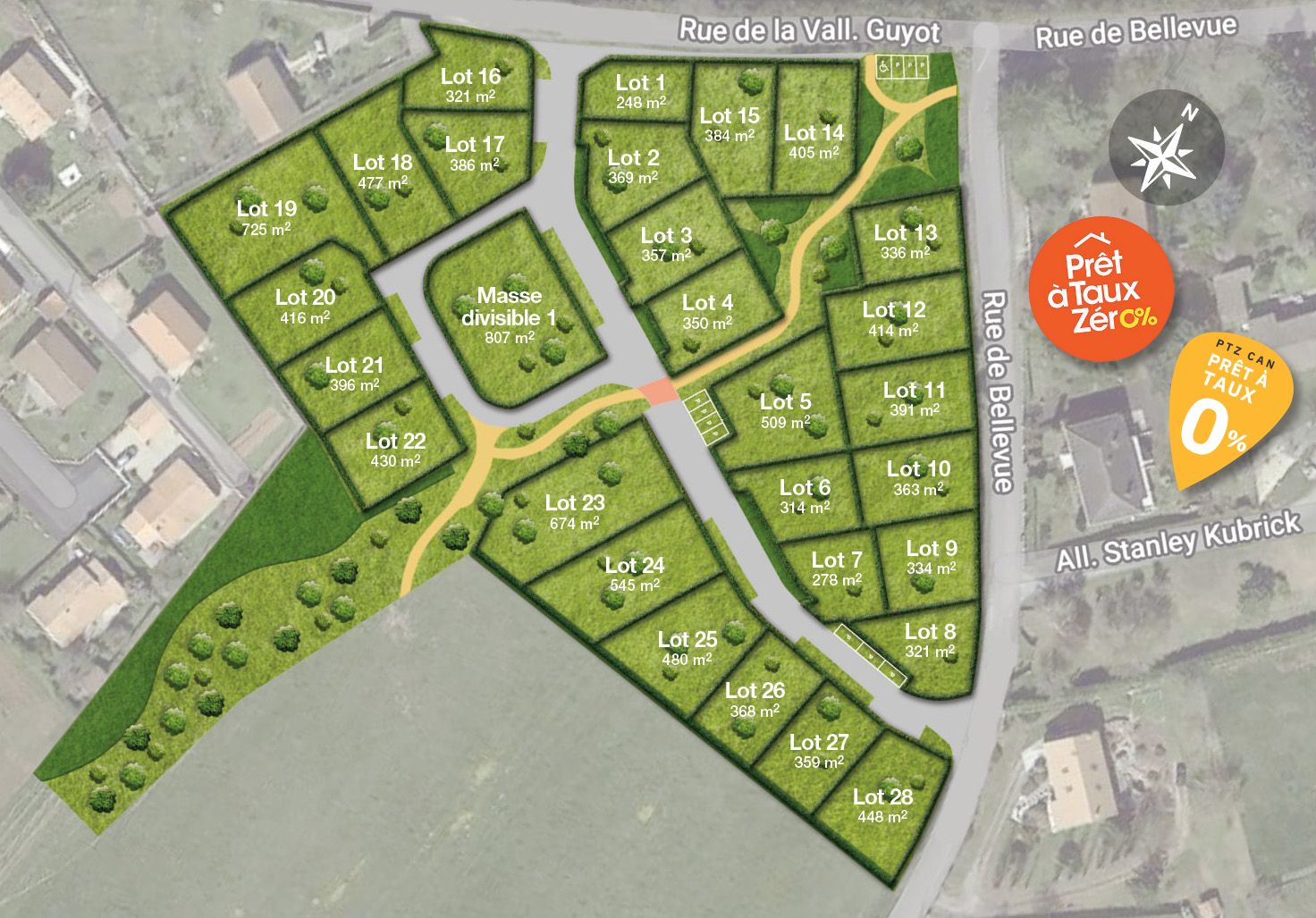 Environnement privilégié pour ces 28 terrains viabilisés prêts à accueillir votre projet de construction. Une orientation sud idéale pour profiter d'une vue remarquable sur la vallée ! Le patrimoine végétal et paysager y est préservé. Vous êtes à 5 minutes en voiture du centre-ville et de l'espace Mendès France. Commerces de proximité, écoles et collèges à 10 minutes à pied.