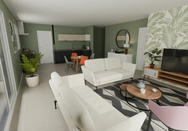 Maison de 90m² lumineuse dans un cadre de vie agréable. Elle offre une belle pièce de vie, 3 chambres, une salle de bain, ainsi qu'un garage. L'agencement a été pensé pour offrir un cadre de vie confortable, fonctionnel. Conforme à la réglementation RE2020, cette maison vous garantit une performance énergétique optimale et un confort durable.