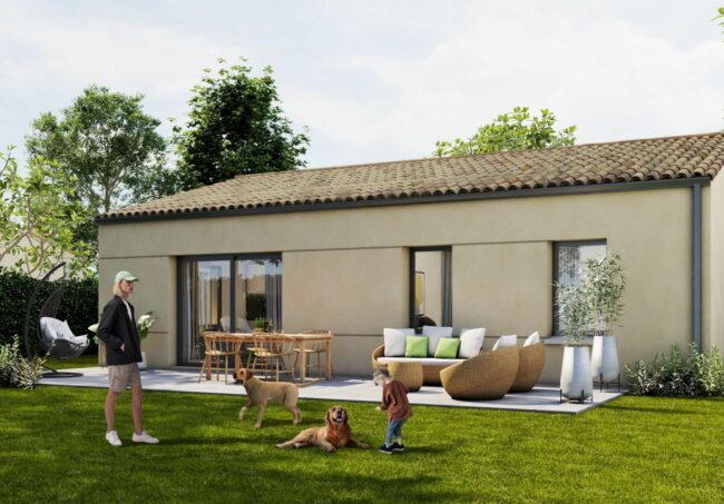 maison 3 chambres, cellier, cuisine ouverte sur pièce de vie de 45.17m²