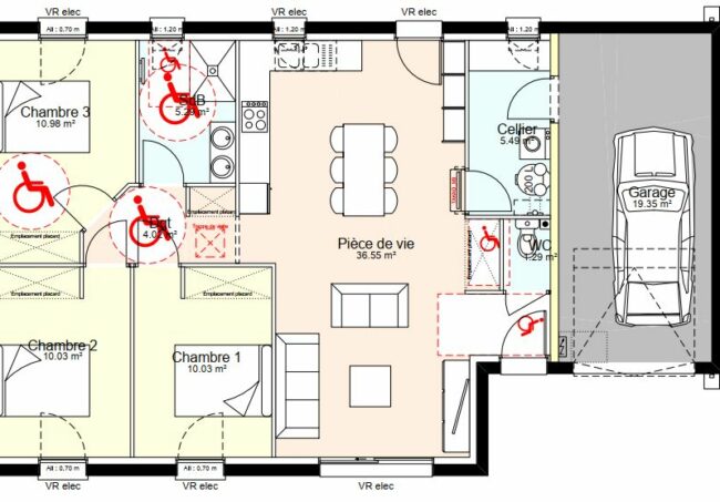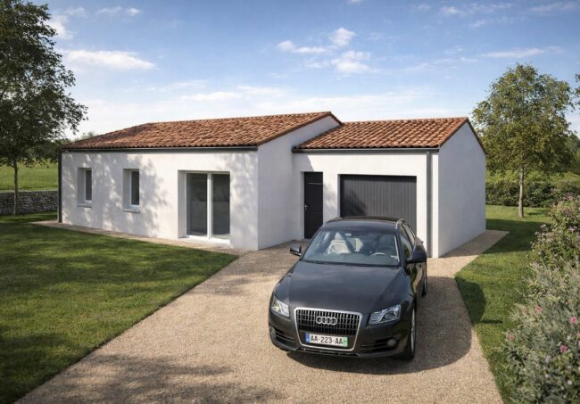 Maison de plain-pied de 83 m² habitables et 19.35 m² de garage.